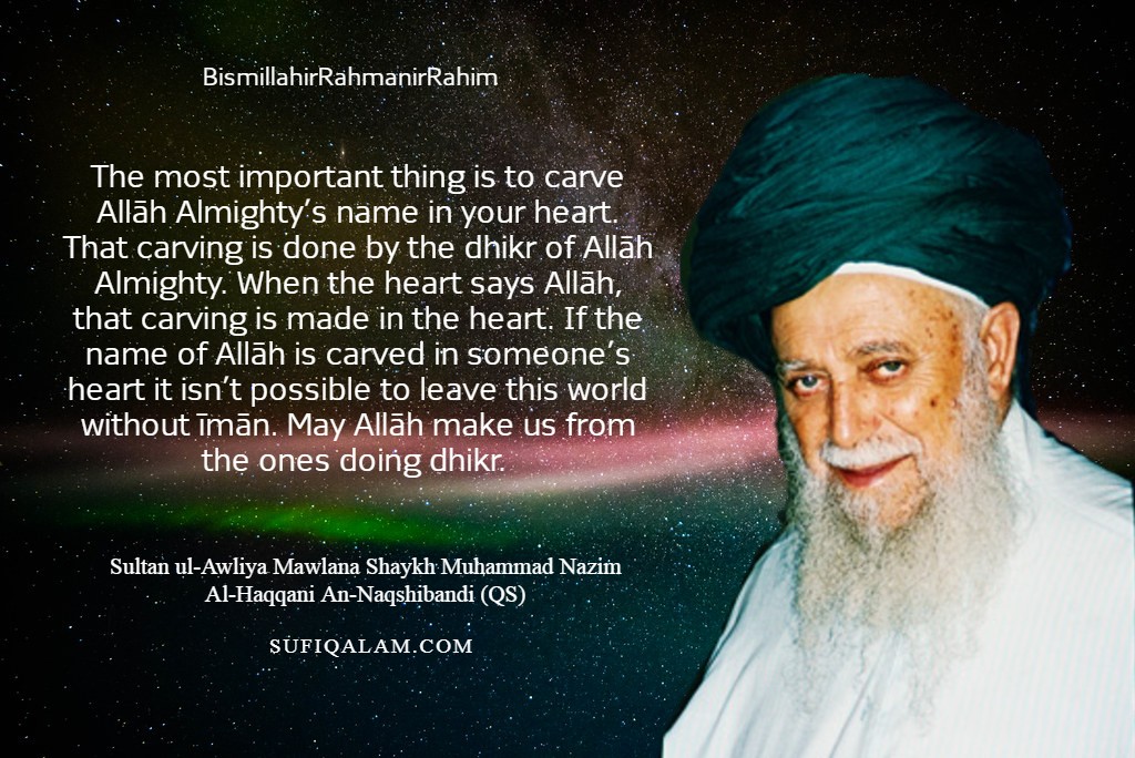 We are Naqshbandī. The most important thing is to carve Allāh Almighty’s name in your heart. That carving is done by the dhikr of Allāh Almighty. When the heart says Allāh, that carving is made in the heart. If the name of Allāh is carved in someone’s heart it isn’t possible to leave this world without īmān. May Allāh make us from the ones doing dhikr. Shāh-i Naqshband, may Allāh raise his maqām always – both his maqām and the Sulṭān in whose presence we are. May He (jj) raise the stations of Sulṭānu l-Anbiyā’ also. “Ṭarīqatunā ṣ-ṣuḥbah wa l-khayru fi l-jam‘iyyah” he said. “Our way is the way of ṣuḥbah. And blessing is in gathering” he said. Awliyā’ take these pearls from the oceans of wisdom of the Prophet (ﷺ).