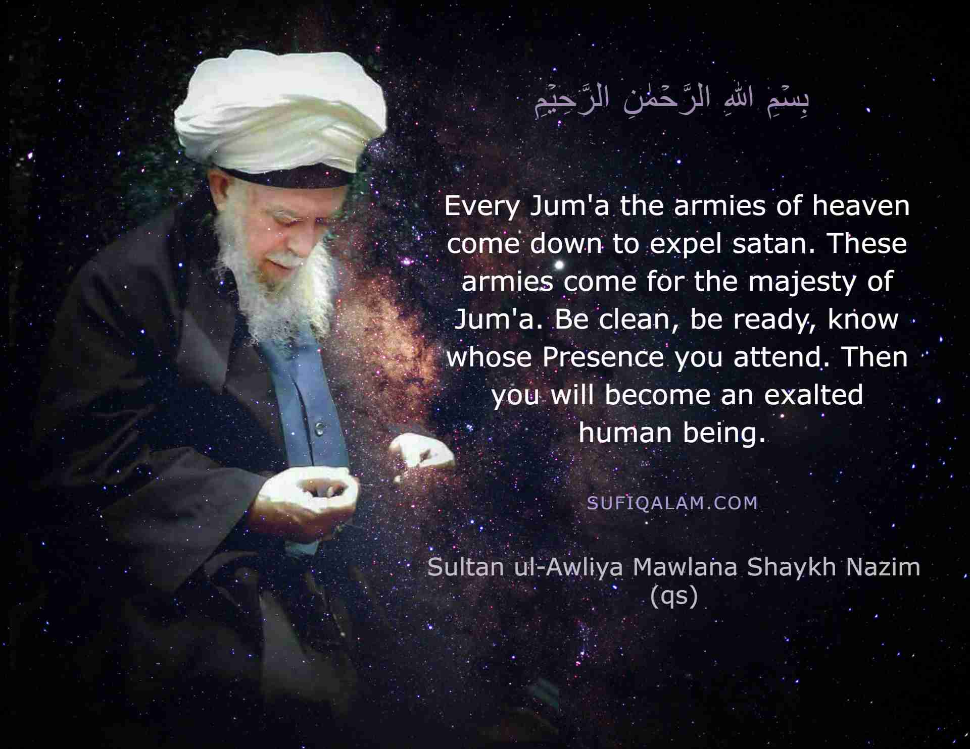 Every Jum’a the armies of heaven come down to expel satan. These armies come for the majesty of Jum’a. Be clean, be ready, know whose Presence you attend. Then you will become an exalted human being.