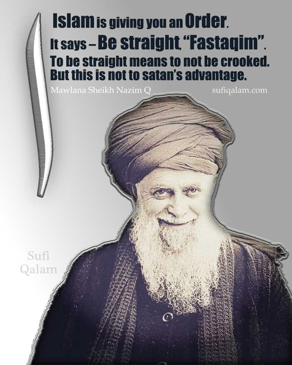 MashaAllah, O Shah Mardan. This is giving all people such a power that you cannot know its limits. It’s an order from heavens, Habibu r-Rahman, Sahib Dawran is saying to all people – Be straight! Don’t be crooked. Snakes are crooked/ curved. Be straight! “Fastaqim Kama Umirta” (11:112) Prophet (ﷺ) said – “Shayyabatni Surat Hud” The surah Hud aged me, it made me get older. Why? Such an order came – “Fastaqim Kama Umirta” (11:112) Be straight the way you were ordered to be! The meaning for all people – Be straight! Go ahead O Shah Mardan, I am waiting for your explanation. What a nice saying – Be straight! Don’t be crooked! Don’t be crooked, be straight. The order from heavens for the Prophet salawatullahi wa salamu alayhi – “Fastaqim Kama Umirta” (11:112), Be straight the way you were ordered, O My Habib. Allahu Akbar! This is enough and more than enough for all people: One saying, one advice, one order from heavens – be straight. Is there anything wrong in Islam? Islam is not crooked. Islam is ordering people to be straight. Don’t be crooked! Snakes are curvy, not straight. They will crush you. Be straight!