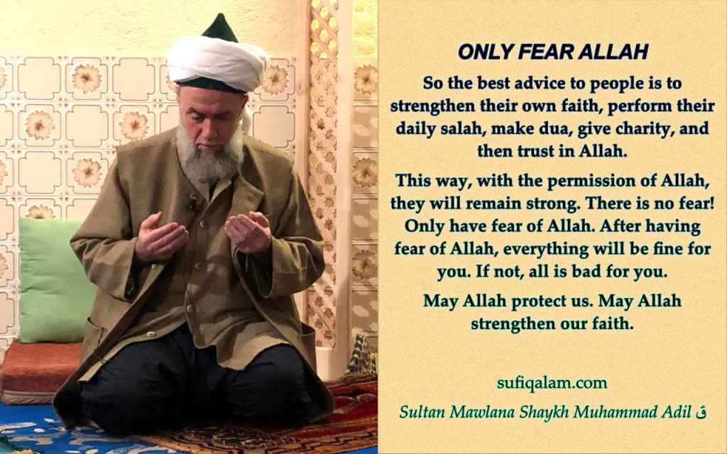As long as Allah does not want something, it won’t happen. Although of course one must also take precautions, yet while taking precautions, the most important thing is to trust in Allah, to believe in Him, and to have faith in Allah. The stronger one’s faith is, the more relaxed he will be. The main goal of Shaytan is to weaken faith, for after weakening a man’s faith, Shaytan can have him do anything. One whose faith is strong, remains strong. And because [he knows that] everything is from Allah, he can remain calm. So the best advice to people is to strengthen their own faith, perform their daily salah, make dua, give charity, and then trust in Allah. This way, with the permission of Allah, they will remain strong. There is no fear! Only have fear of Allah. After having fear of Allah, everything will be fine for you. If not, all is bad for you. May Allah protect us. May Allah strengthen our faith.