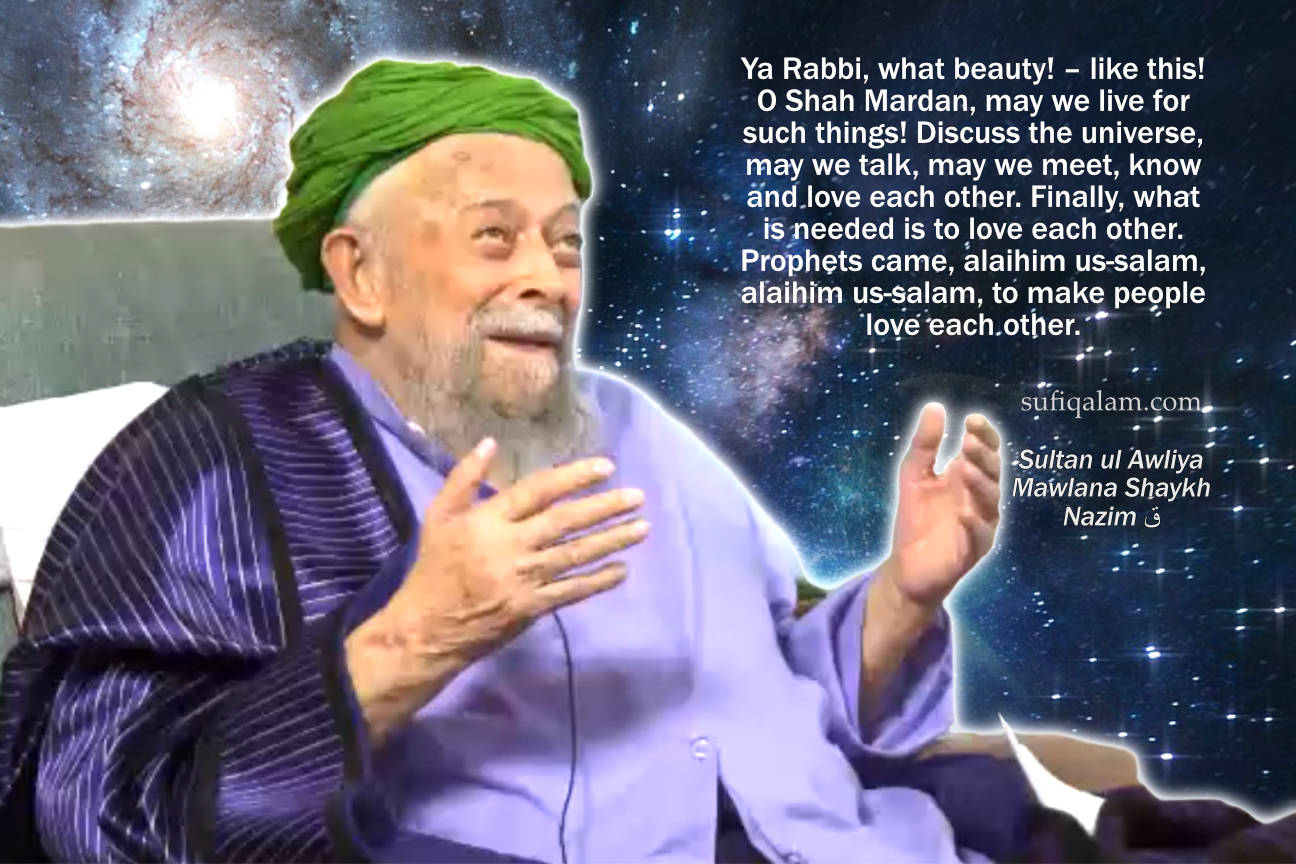 Ya Rabbi, what beauty! – like this! O Shah Mardan, may we live for such things! Discuss the universe, may we talk, may we meet, know and love each other. Finally, what is needed is to love each other. Prophets came, alaihim us-salam, alaihim us-salam, to make people love each other. Please go on Shah Mardan, how beautiful! Prophets came to make people love one another, to teach them, Not to create enmity amongst each other. Prophets came to make people love each other. Allah Dhu l-Jalal sent prophets, alaihim us-salam to people, so that they may love one another, respect each other. They were sent for this reason. To teach people.