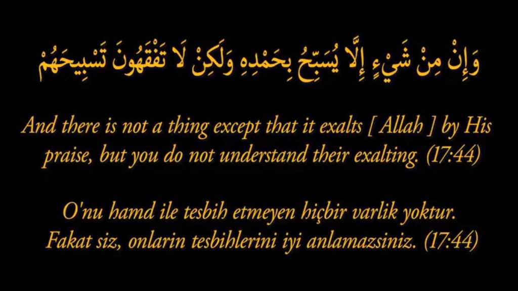 Astaizzu Billah “There is nothing existing on Earth or in the Heavens that is not glorifying Allah” (17:44) The verse is like this? To glorify is to remember Allah. “There is nothing existing on Earth or in Heavens that is not glorifying Allah” (17:44) Because Allah (swt) is the Greatest Creator. He is our Lord (jwa) He Created the smallest thing existing in the worlds & the largest. Everything glorifies Allah (swt). Without glorifying Him they cannot live. They would not exist in the universe. And this confirms the existence of mankind on earth with the blessings of Zikr-Allah (swt).
