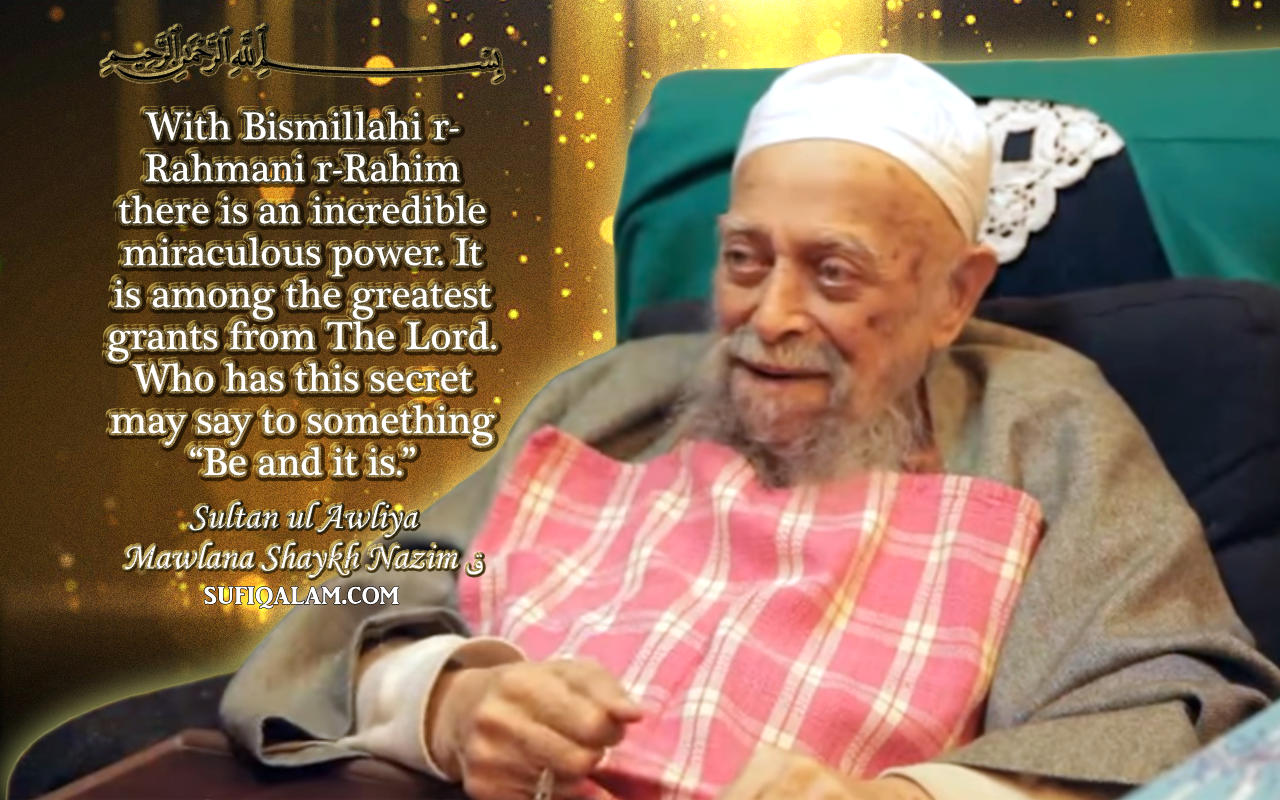 With Bismillahi r-Rahmani r-Rahim there is an incredible miraculous power. It is among the greatest grants from The Lord. Who has this secret may say to something “Be and it is.” What do we need technology for? There is no need. Let the westeners be busy, tire themselves, and die for nothing, inventions. We do not need this. We have a grant from Allah (swt) to say Bismillahi r-Rahmani r-Rahim.. say to something Bismillahi r-Rahmani r-Rahim and it happens. You say and “it is”. “Be and it is”. People forgot.. they forgot all the power to organize the world, for the majority of the Muslim world, the sword of Allah (swt) – Bismillahi r-Rahmani Rahim. O believers! You have knowledge but you do not possess certainty. You know but you do not have certainty. Hassan Al Basri had knowledge, but certainty, was with Habib alAjami. He said Bismillahi r-Rahmani r-Rahim and walked (on water). He walked on what do you call it… on the river as if it was an asphalt road.